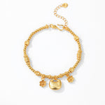 Gold Sand Bracelet with Lucky Character Lock and Small Flower for Women New Chinese Style Palace Style Jewelry for Couples