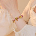 Hello Kitty cat sand gold luck beads pendant Sanrio braided bracelet pink handmade DIY cute bracelet female